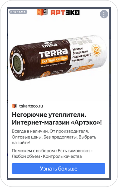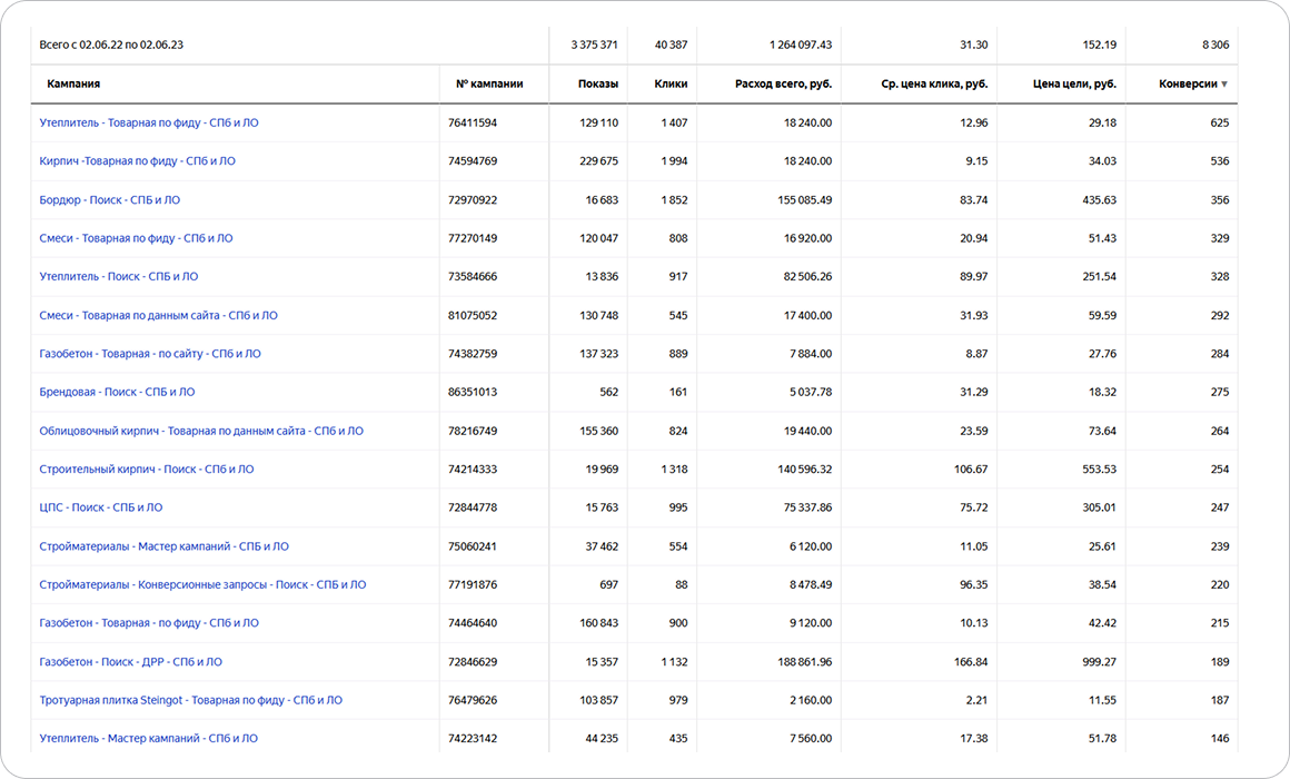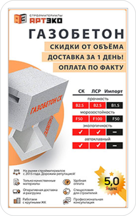 Компания «АРТЭКО» - надежный поставщик стройматериалов для многоэтажного и малоэтажного загородного строительства. Работают на строительном рынке с 2014 года и осуществляют комплексные поставки по Санкт-Петербургу и Ленинградской области. Обратились к нам за настройкой и сопровождением контекстной рекламы Яндекс Директ весной 2022 года.