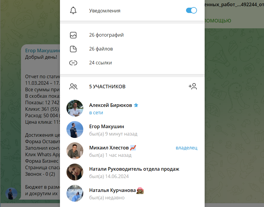 Создаем удобный чат по обсуждению рабочих вопросов. Куда добавляем всех специалистов работающих над проектом